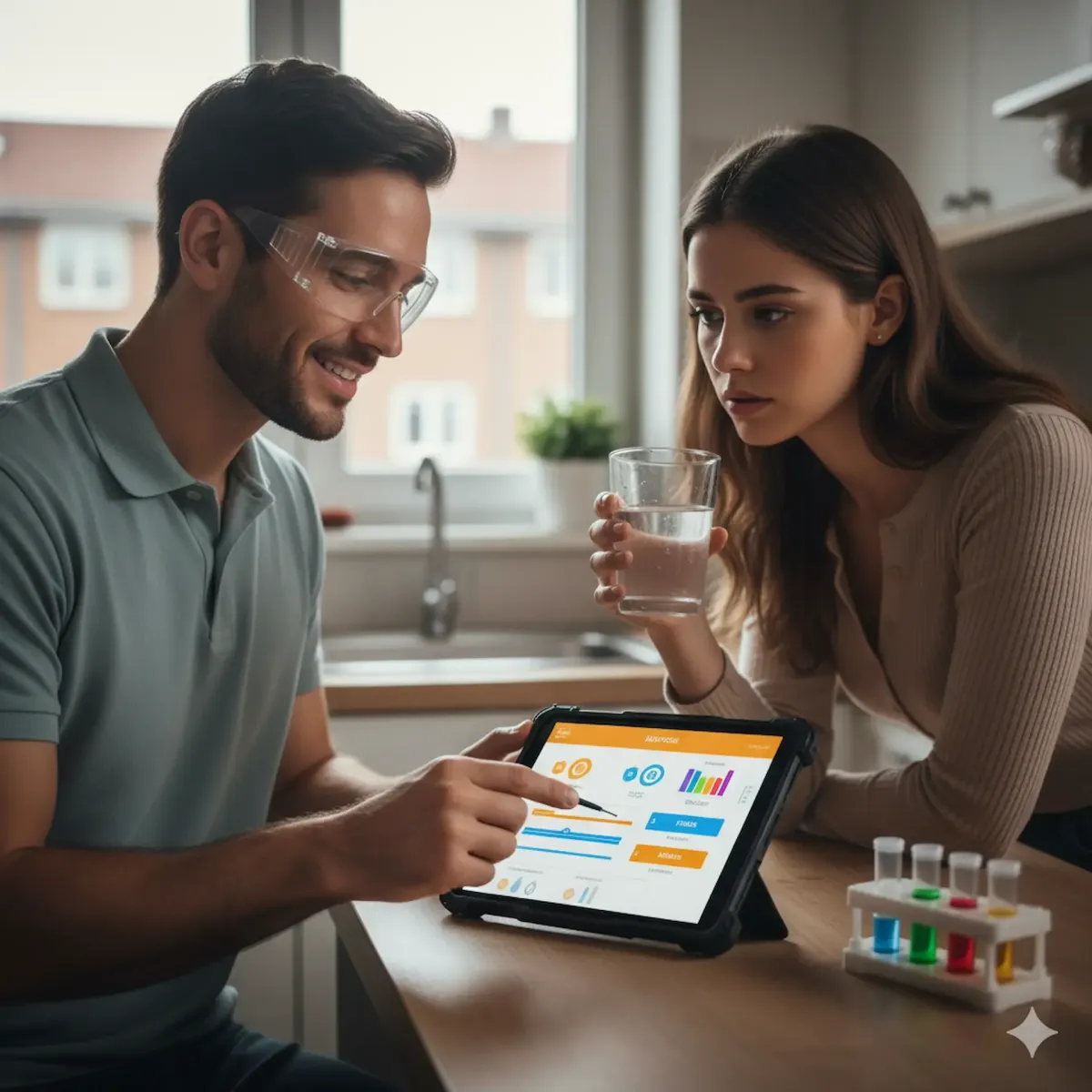 Aplicamos pruebas científicas en vivo para identificar químicos, metales, cloro, dureza y pH.